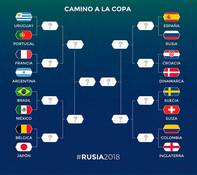 ¿Quiénes son las selecciones que siguen con vida en la Copa del Mundo? Francia, Argentina, Uruguay, Portugal, España, Rusia, Croacia, Dinamarca, Brasil, México, Suecia, Suiza, Colombia, Inglaterra, Japón y Bélgica.
