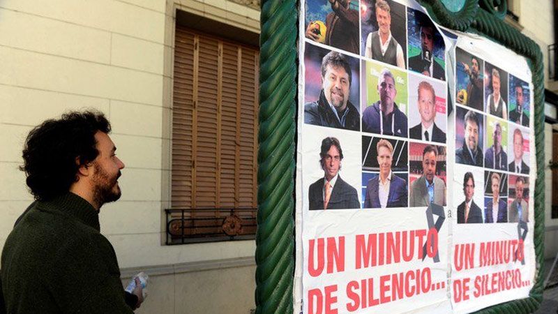 Los carteles piden "un minuto de silencio". Tienen un crespón negro y las fotos de algunos periodistas deportivos. La mayoría está realizando la cobertura del Mundial en Rusia para TyC Sports como Diego Díaz, Marcelo Palacios, Leonardo Farinella, Flavio Azzaro y Hugo Balassone.