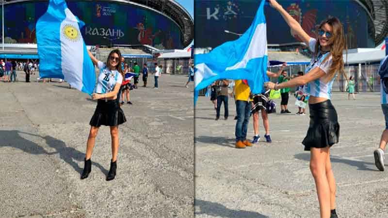 Pampita se hizo presente en el estadio Kazán Arena para el partido que disputó la Selección argentina contra Francia. Si bien en los encuentros anteriores la modelo había optado por alentar desde su casa y compartir sensuales fotos con la bandera celeste y blanca, esta vez decidió viajar a Rusia donde, de paso, se reencontró con Pico Mónaco.