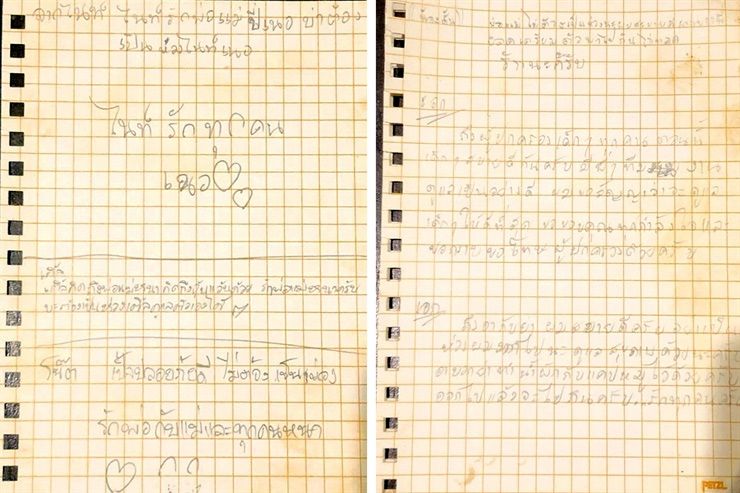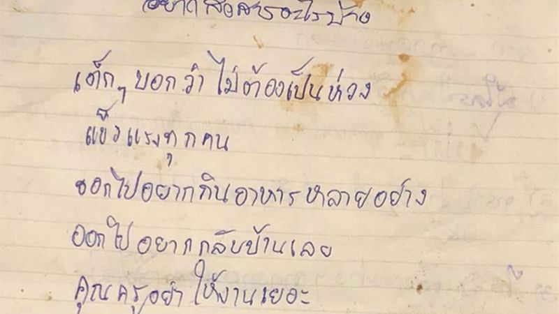 "No se preocupen, papá y mamá. Hace dos semanas que me fui pero volveré para ayudarlos en el local", escribió Bew, cuyos padres atienden un almacen. Piphat, conocido como Nick, pidió: "Si salgo, por favor, llévenme a comer moo krata", un plato tailandés a base de cerdo y verduras".