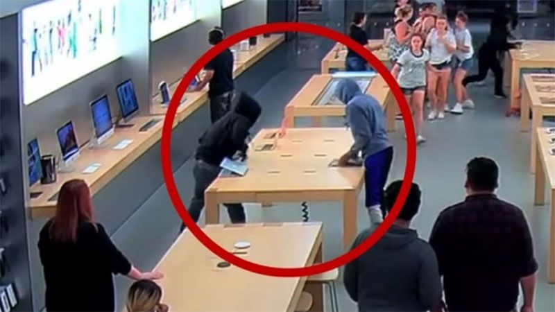 No se trató de un robo cinematográfico; no hubo disfraces, armas ni empleados inmolándose por salvar los productos, mucho menos un plan muy elaborado. Simplemente cuatro personas que en 30 segundos se llevaron alrededor de 27 mil dólares en equipos de Apple. Probablemente, según las imágenes de las cámaras de seguridad, los ladrones no hayan ni sudado.