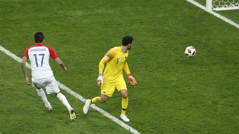El arquero de Francia quiso gambetear a Mandzukic, pero la pelota terminó en la red.