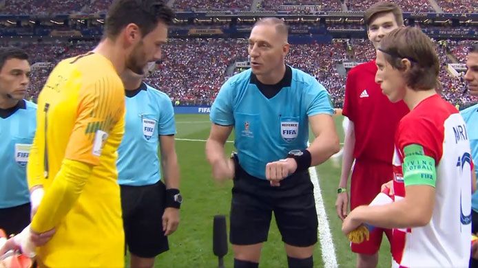 Después de tirar la moneda, el misionero encaró a Hugo Lloris y a Luka Modric y después de darles algunas indicaciones les dijo: "Muchachos, living football", algo así como disfruten el partido.