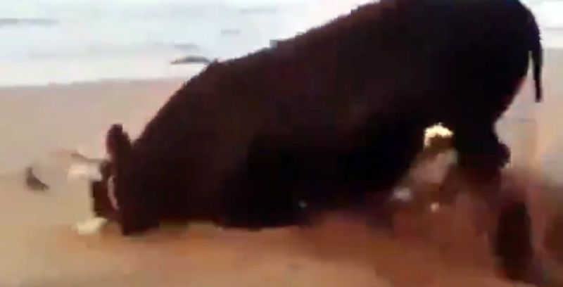 Con el animal ya en su poder, el grupo de proteccionistas lo liberó en una playa para que conozca el mar. En las imágenes que se viralizaron rápidamente se ve como sale disparado de felicidad a jugar en la arena cual cachorrito.
