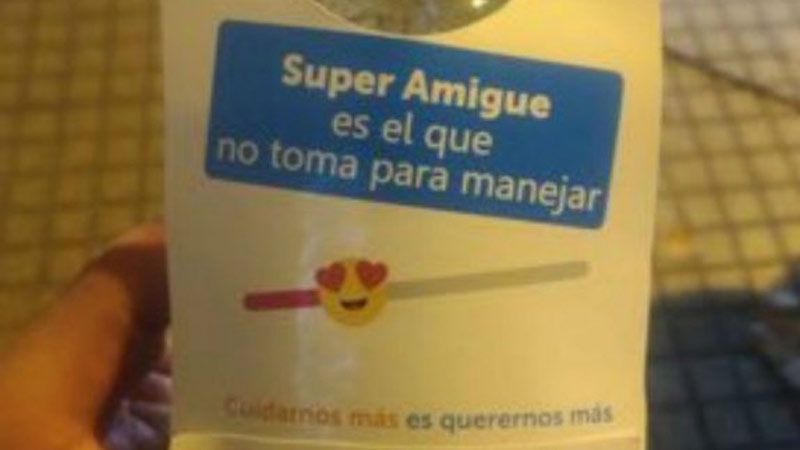 Allí a los conductores cuyo test de alcoholemia les daba resultado negativo se les regalaba una botella de agua mineral con la consigna: "Super Amigue es el que no toma para manejar", como forma de premiar las conductas responsables al volante.