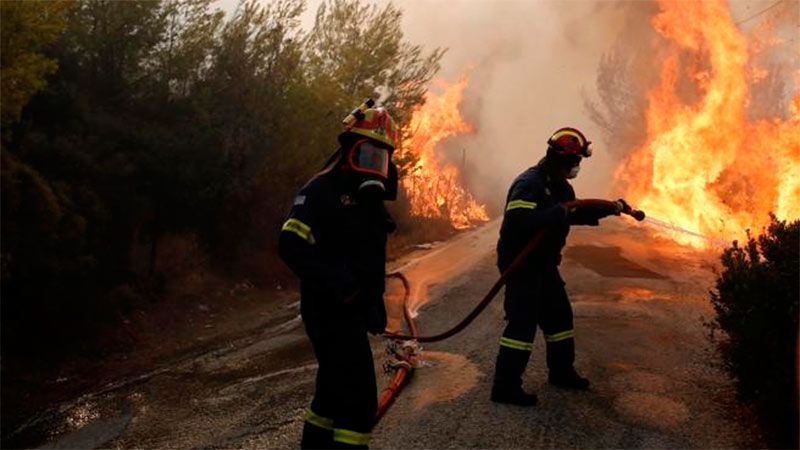 Centenares de bomberos continuaban intentando controlar los siete grandes incendios que asolan Grecia desde el mediodía del lunes, pero las tareas se veían dificultadas por los fuertes vientos de hasta fuerza siete en la escala de Beaufort. Uno de ellos, originado a unos 50 kilómetros de Atenas, provocó la evacuación de tres pueblos donde redujo a cenizas decenas de casas y el cierre al tráfico durante diecisiete kilómetros de la autopista de Olympia, que conecta la capital con el Peloponeso, para evitar que queden conductores atrapados debido a que las llamas están muy cerca del asfalto.