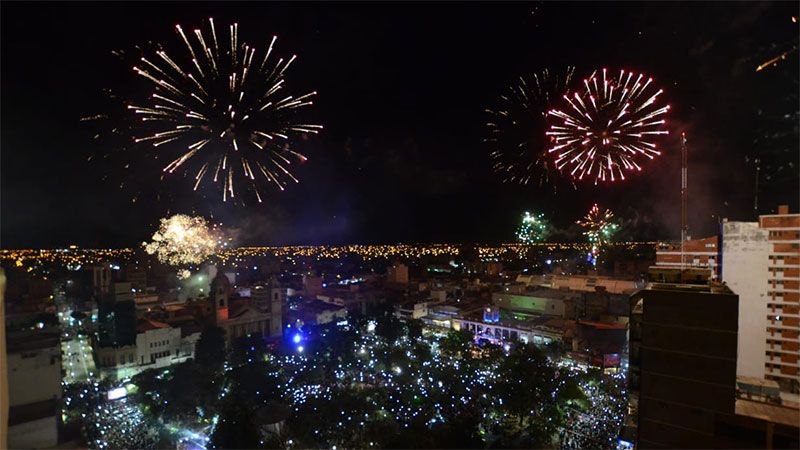 Miles de santiagueños y turistas coparon la plaza Libertad para celebrar un nuevo aniversario de la ciudad capital.