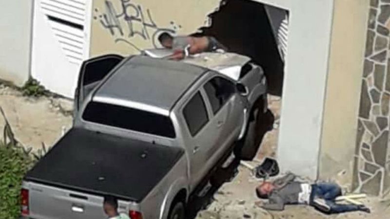 La mañana de este lunes el chofer de una camioneta impactó contra la pared de una residencia a dos presuntos antisociales que le seguían, esto en Valencia, estado Carabobo.