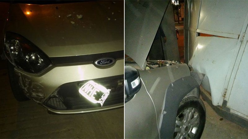 Aparentemente un Ford Fiesta conducido una mujer apellido García fue colisionado en la parte trasera por un Fiat Idea que lo manejaba un joven. Como consecuencia del impacto, el Fiesta que iba por Sáenz Peña dio un trompo, subió a la vereda y terminó incrustado en un portón de chapa.