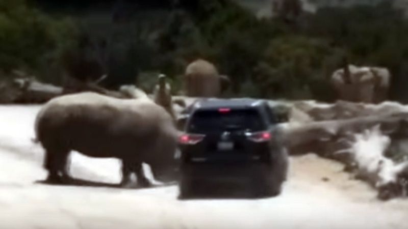La situación ocurrió en México en una reserva denominada African Safari. Al parecer el macho confundió al vehículo con otro macho que quería rivalizar por una hembra.