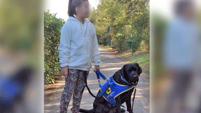 La menor tiene síndrome de West y autismo y desde hace tres meses se encuentra realizando una terapia junto a su perro Preto, el animal de asistencia, que tiene una pechera identificatoria.