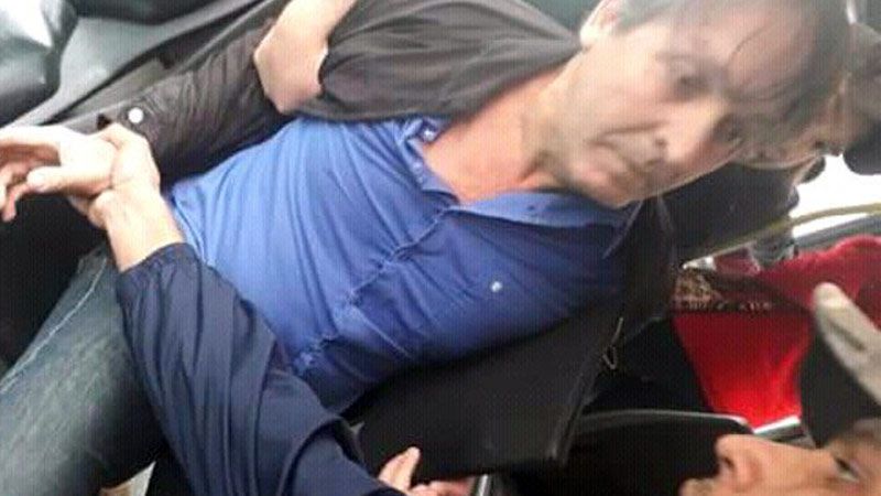 En el video que se viralizó se ve a Salomón diciendo que "fue sin querer", al mismo tiempo que intenta soltarse de los agarrones de los pasajeros.