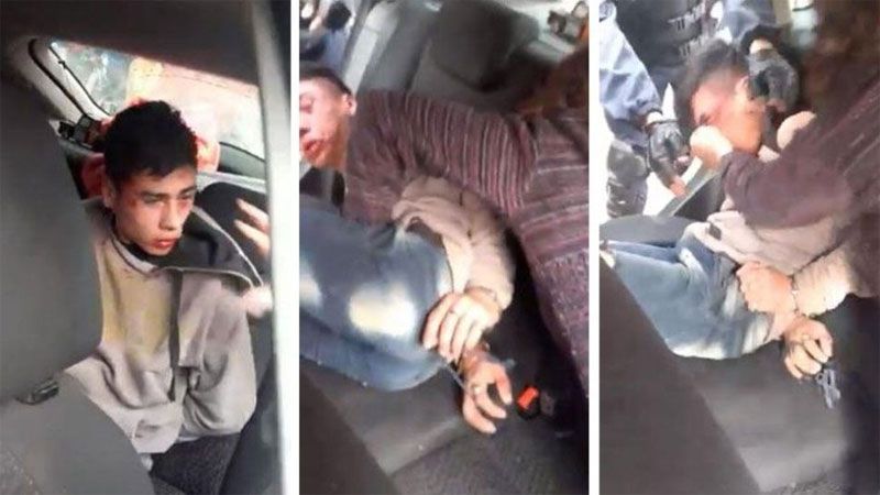 El joven ladrón robó un celular y, ya esposado en el interior del móvil policial, recibió piñas en los genitales, patadas y rasguñones. Imágenes sensibles.