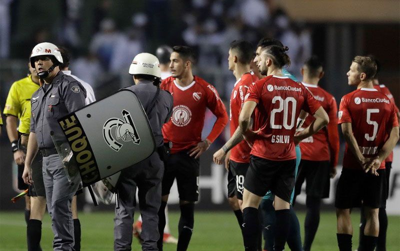 El Rojo empataba sin goles con Santos pero a 9 minutos se produjeron incidentes que obligaron a la suspensión del encuentro. El equipo argentino accedió a cuartos gracias al fallo favorable de la Conmebol.