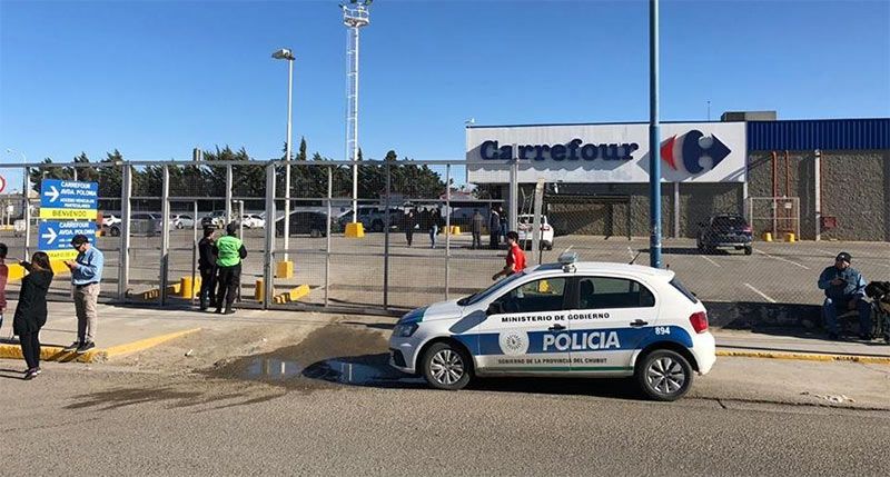 Según el diario El Patagónico, personal de la Seccional Sexta fue alertado por la gerencia del supermercado Carrefour ubicado en la intersección de Lisandro de la Torre y Polonia, había movimientos sospechosos en el estacionamiento del local y preocupaba la circulación de información sobre posibles saqueos desde la mañana.