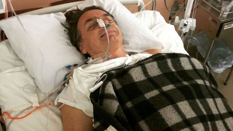 Bolsonaro, líder en las encuestas para la primera vuelta del 7 de octubre, fue ingresado ayer por la tarde con un cuadro vital comprometido: hemorragia interna, tres perforaciones en el intestino delgado, una lesión grave en el intestino grueso y otra en una vena del abdomen.