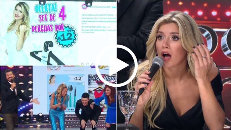 El negocio del novio de Cinthia utilizaba la imagen de la flamamte jurado del Bailando para promocionar en las rede sociales los productos que vende. Al ver su imagen en una publicidad en la que señalaba una oferta de perchas de plástico, el conductor no pudo evitar la risa y Laurita se mostró muy molesta: “No es gracioso. De verdad, no pueden agarrar fotos de internet y ponerme con perchas porque hoy soy conocida”, lanzó, sobre el uso indebido de su imagen, mientras Marcelo hacía chistes.