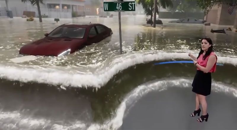 Con ese objetivo, el canal de noticias The Weather Channel desplegó un informe con impresionantes efectos visuales en torno a su presentadora Erika L. Navarro, con el objetivo de que la población tome verdadera dimensión de lo que está por llegar.