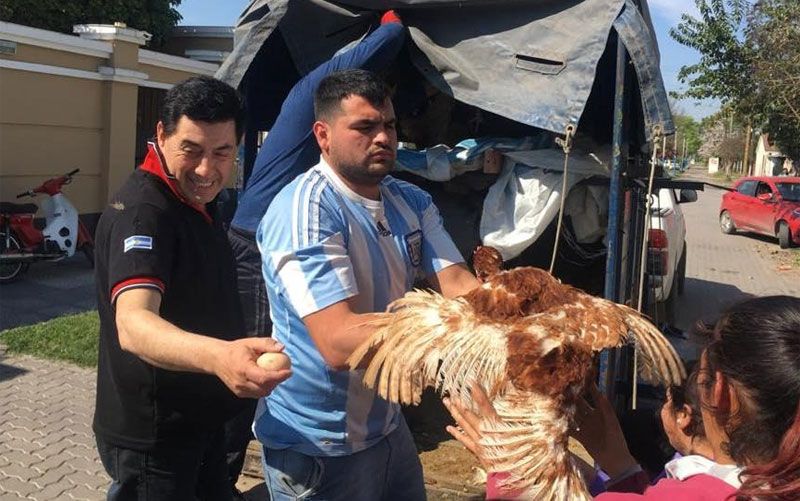 Es usual ver imágenes de legisladores repartiendo remedios, entregando colchones y hasta participando de bingos en los barrios. Sin embargo, el ingenio de los parlamentarios para tomar contacto con los vecinos se supera día a día. Esta vez, el peronista Luis Espeche optó por regalar gallinas "ponedoras" a habitantes de Bella Vista.