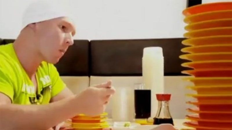 Se comió 100 platos de sushi y lo echaron del tenedor libre