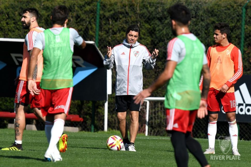 Si bien no hubo indicios futbolísticos en la práctica de este viernes, el DT dialogó con 11 jugadores (Montiel, Maidana, Pinola, Casco, Borré, Pratto, Ponzio, Palacios, Quintero, Pérez y Gonzalo Martínez). Armani no formó parte de este cónclave, pero es un hecho de que será el arquero titular, de no mediar inconvenientes.