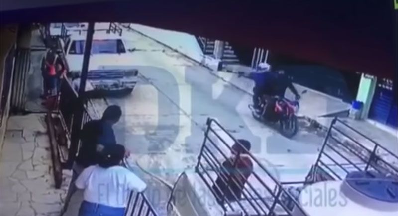 Una cámara de seguridad registró el momento en que un sicario que iba en la parte trasera de una moto fusila en plena calle al corresponsal de El Heraldo de Chiapas, Mario Leonel Gómez Sánchez.