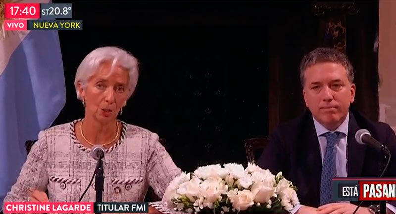 El ministro de Hacienda, Nicolás Dujovne, y la directora del Fondo Monetario Internacional (FMI), Christine Lagarde, realizaron el miércoles por la tarde una conferencia de prensa conjunta en la que anunciaron un nuevo acuerdo entre la Argentina y el FMI.