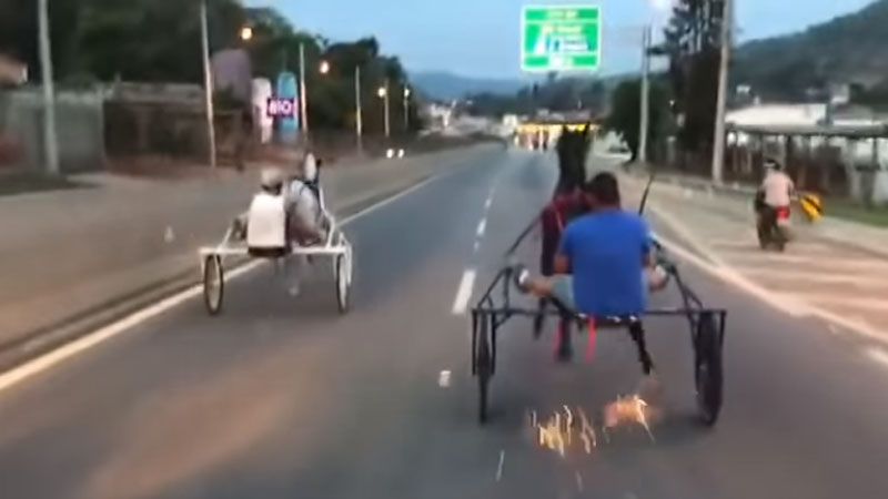 El conductor no lo podía creer. Circulaba con normalidad por la Autopista Raposo Tavares, a la altura de Mairinque, en San Pablo, cuando dos jóvenes a bordo de carretas improvisadas irrumpieron en la calzada.