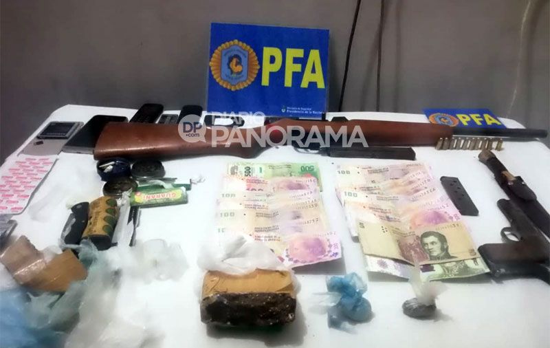 Los efectivos federales realizaron una minuciosa requisa en el inmueble allanado y se procedió al secuestro de 1 pistola 32mm con cargador y 10 cartuchos bala, 1 carabina 22mm con cargador, 1 cuchillo con vaina.