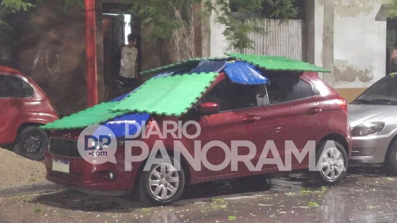Urgente los que estaban circulando en ese momento buscaron un techo donde guarecerse, los que los tenían estacionados recurrieron a múltiples elementos, los más usados las alfombras de los propios autos, parasoles de cartón, colchonetas de gimnasio y todo aquello que tuvieron a mano.