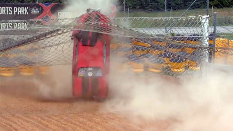 Fue durante una carrera de Drag Racing (carreras de aceleración). El piloto Mike Bowman sufrió una falla en su vehículo y protagonizó un duro accidente.