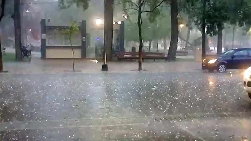 Un fuerte granizo azotó la Madre de Ciudades la mañana de este jueves. Las piedras que caían eran del tamaño de un huevo de codorniz y se extendió por más de diez minutos.
