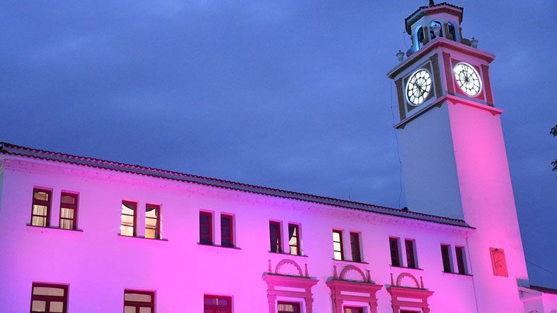 El edificio de la Casa de Gobierno se iluminó de rosa en adhesión al día internacional de la lucha contra el cáncer de mama que se celebra el 19 de octubre por iniciativa de la Organización Mundial de la Salud (OMS).