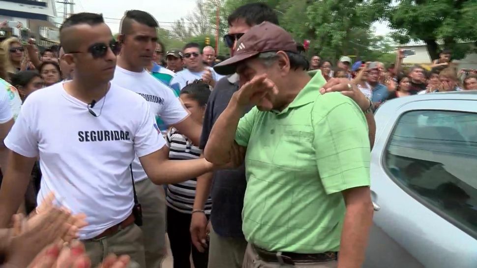 Minutos antes de las 15 horas, entre lágrimas y aplausos, el pueblo de Quimilí acompañó a “Pochi” Chávez, durante la llegada al Cine Teatro de la ciudad, donde velan los restos de su hijo Franco.
