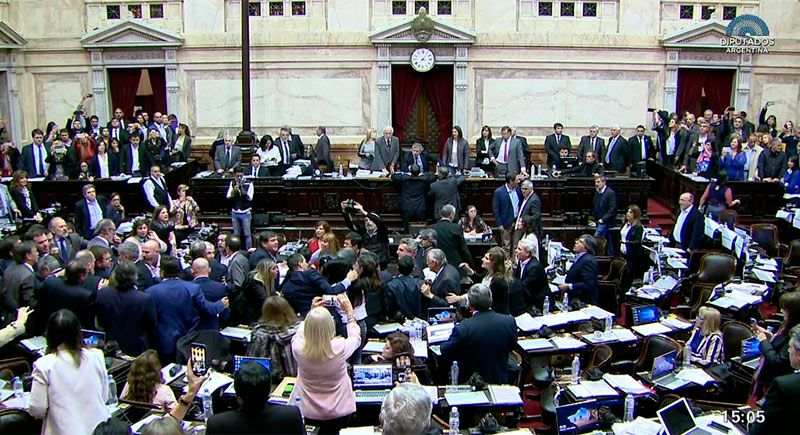 El debate se desarrolló con normalidad, en el marco de una sesión especial que por la tarde pasó a un cuarto intermedio en el que los jefes de bloque, junto al presidente de la Cámara, evaluaron con el secretario de Seguridad de la Ciudad de Buenos Aires, Marcelo D'Alessandro, la situación en las inmediaciones del Congreso, donde se registraron incidentes.