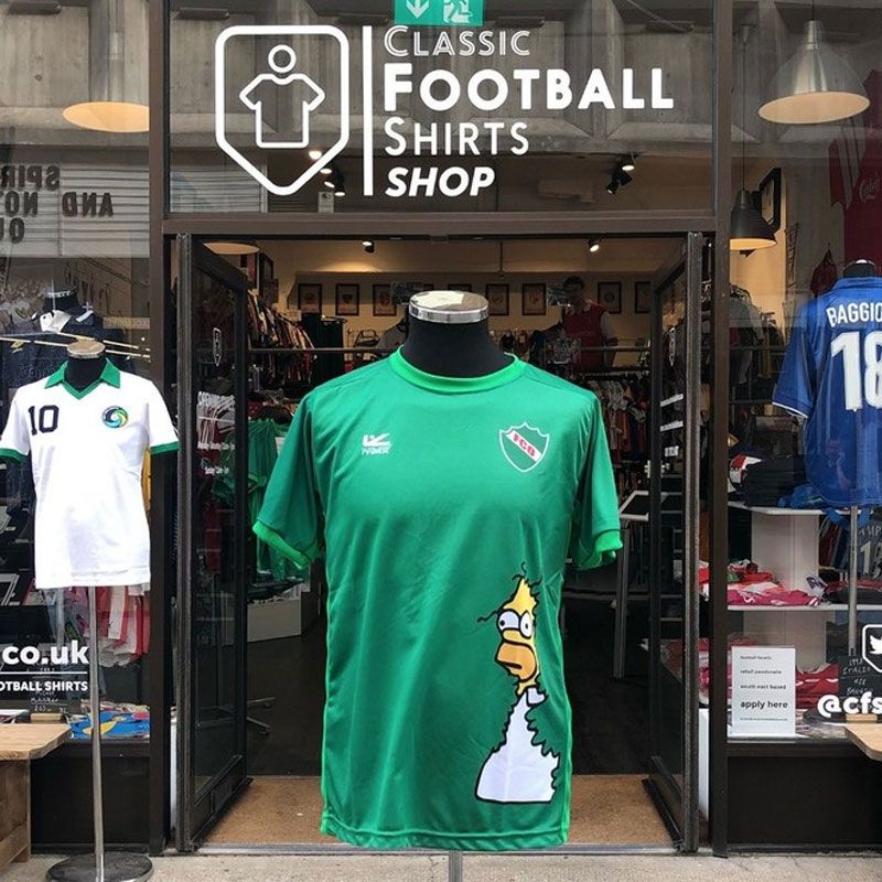 Una camiseta de Cipolletti de Río Negro, que participa en el Torneo Federal A, es furor en Londres, en donde se la vende a un precio mayor a las de River y Boca. Nicolás Caprio, el arquero y creador de la casaca, se le ocurrió poner a Homero Simpson escondiéndose en un arbusto.
