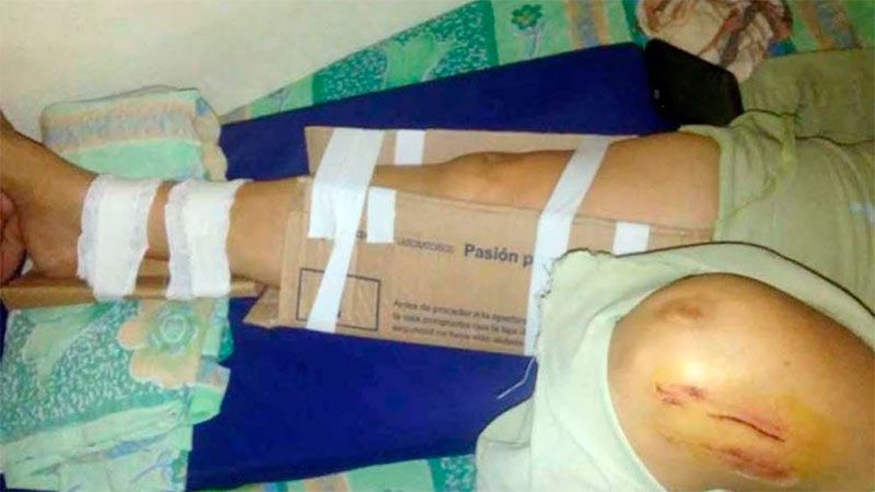 La gravedad demandaba la inmediata inmovilización de su pierna derecha, pero el cometido no parecía sencillo por la falta de insumos y elementos de ortopedia en el hospital. Sin los medios indispensables, el personal debió ingeniárselas y apelando más a la creatividad que a cualquier protocolo médico, improvisó una rudimentaria "férula" reciclando cartones de cajas y cintas adhesivas.