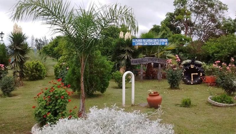 Un cartel en el centro de la plazoleta sintetiza el pensamiento del lugar: “El mundo no cambia con tu opinión, cambia con tu ejemplo”. El letrero se eleva por encima de otro de bienvenida y al lado de una cubierta de tractor, ingeniosamente convertida en un reloj. Ellos todo lo reciclan y en medio de las hamacas, calecita, subibaja y resbaladero, construyeron una cabañita de madera para el deleite de los más chiquitos.