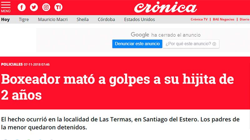 Durante la mañana de este miércoles, varios diarios nacionales se hicieron eco de la noticia y brindaron espacios destacados a la misma. Por el lamentable hecho, permanecen detenidos los padres de la pequeña.