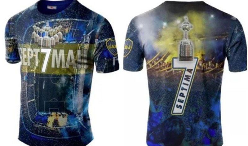 En la antesala de la superfinal de la Copa Libertadores, ya se pusieron a la venta remeras no oficiales de Boca con un mensaje haciendo alusión a la séptima copa que conseguirá el conjunto xeneize en caso de ganarle a River.