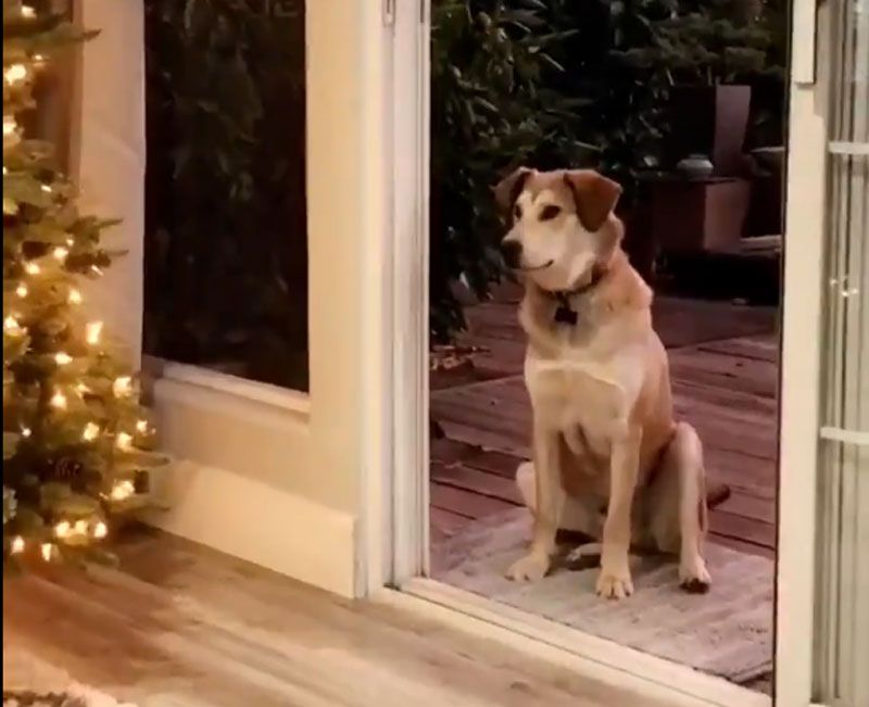 En un video se ve al animal esperando sentado en el umbral de una casa, pensando que la puerta está cerrada, aunque está abierta. Y se queda ahí, inmóvil, hasta que alguien se acerca y finge abrir una puerta imaginaria.