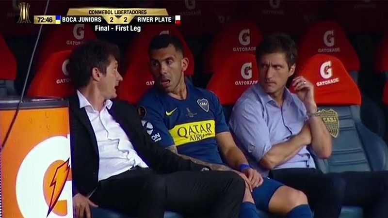 En la fase final de la Copa, estuvo en cancha durante sólo 66 minutos en siete partidos. Sin embargo, ante River el mellizo volvió a apostar por Tevez y lo hizo entrar desde el banco a los 72' de la ida contra el Millonario en la Bombonera. "La final es por lo que vos viniste", le dijo Guillermo a Carlitos antes de que entrara. "Ganalo", retrucó Gustavo sentado a su lado en el banco de suplentes.