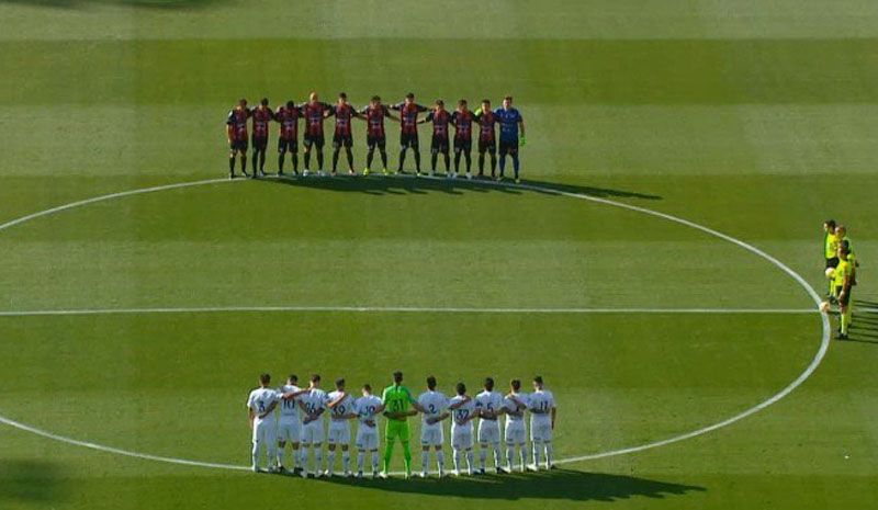 El estadio se sumió en un respetuoso silencio y los aplausos de protagonistas y espectadores sucedieron al homenaje.