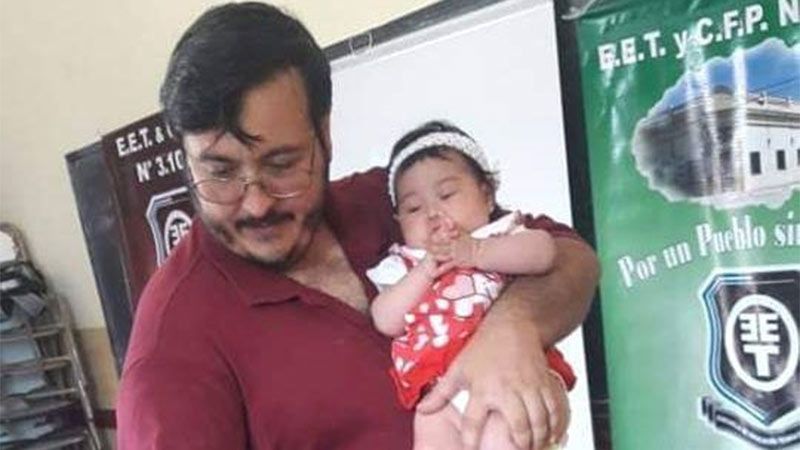 La fotografía de un docente dando clases con la pequeña hija de una de sus alumnas en brazos, se viralizó en el sur provincial. Se trata del ingeniero agrónomo salteño Ernesto Paz Chain (47), ex estudiante de la UNSa, quien dicta clases de en las dos escuelas técnicas de la ciudad de Rosario de la Frontera.