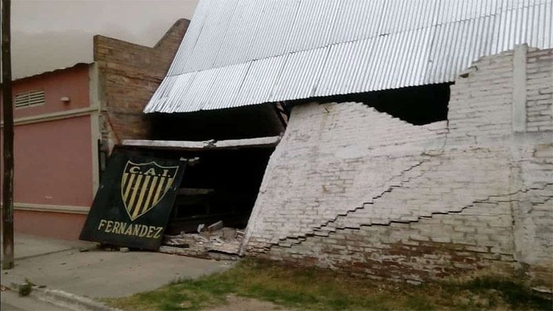 El club Independiente de Fernández sufrió las fuertes ráfagas que azotaron la provincia este jueves. El techo del tinglado de la cancha de básquet voló por completo.