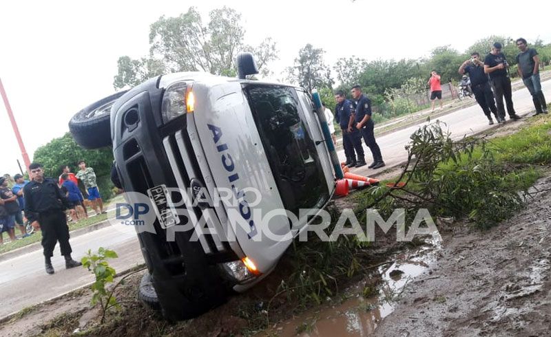 Una camioneta de la Policía trasladaba a un detenido y, por causas que se investigan, volcó sobre la Avenida Lugones y Bolivia.