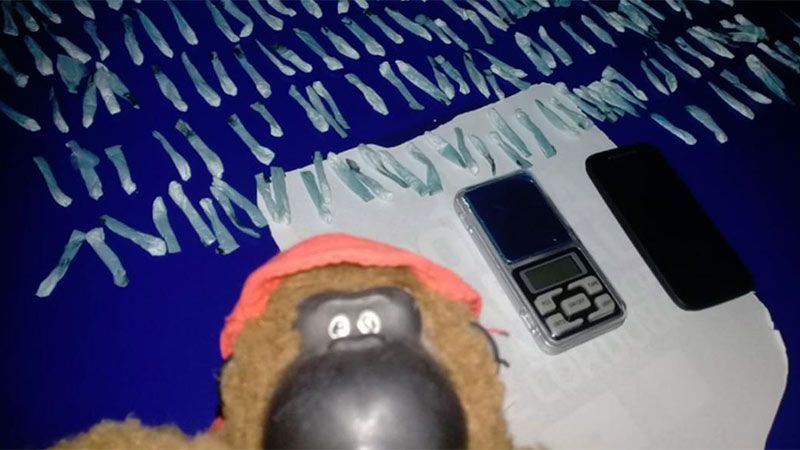 En el procedimiento se secuestró una balanza y 213 envoltorios con cocaína ocultos en el interior de un mono de peluche.