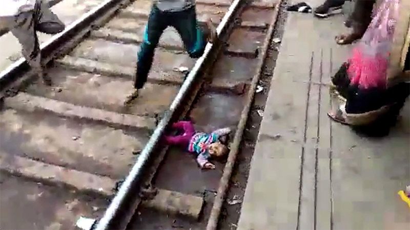 Una bebita se salvó de milagro de morir aplastada por un tren en Nueva Delhi, en la India. Atrapada en las vías y frente a la mirada atónita de los pasajeros, la formación pasó por arriba de ella. La nena, sin embargo, no resultó herida.