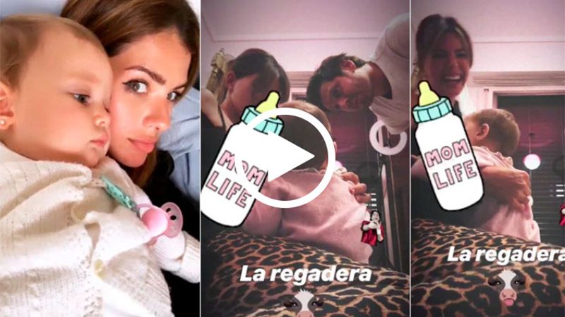 "La regadera" y "Mom life (vida de mamá)", fueron las dos frases que escogió la actriz para acompañar el video, en el que se la ve con su hija a upa, dándole la teta, hasta el momento en el que le hace una consulta a su pareja, quien se acerca a mirar su pecho y ella lo salpica con un chorrito de leche.