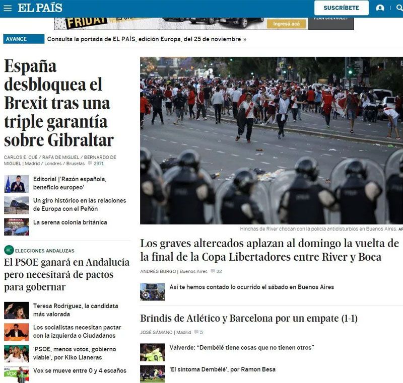 Los lamentables episodios de la final de la Copa Libertadores recorrió la mayoría de las redacciones del mundo.